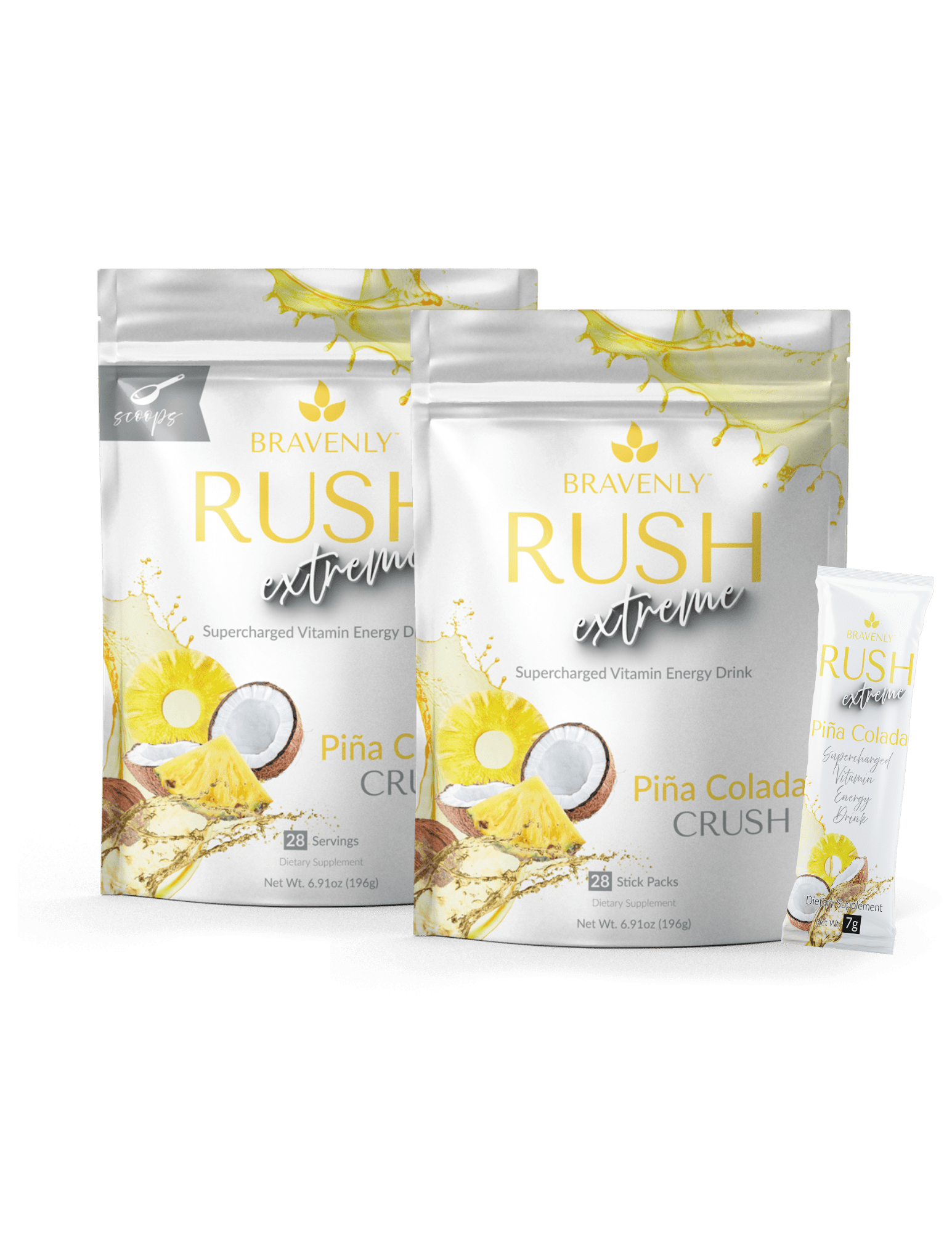 Feel the RUSH like never before with our extreme version of our Bravenly favorite. Now with MORE energy, mood, and brain-supporting ingredients like caffeine, niacin, vitamin A, and riboflavin!